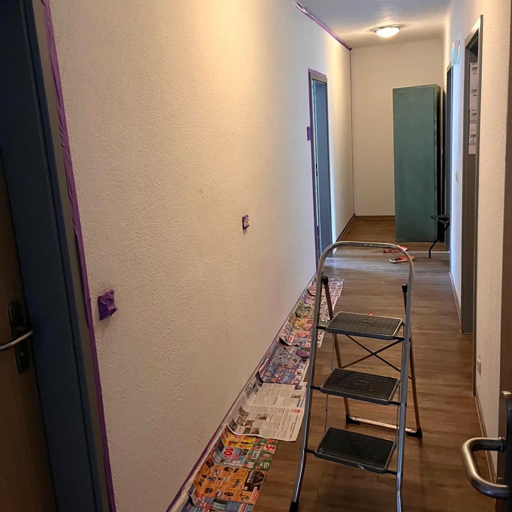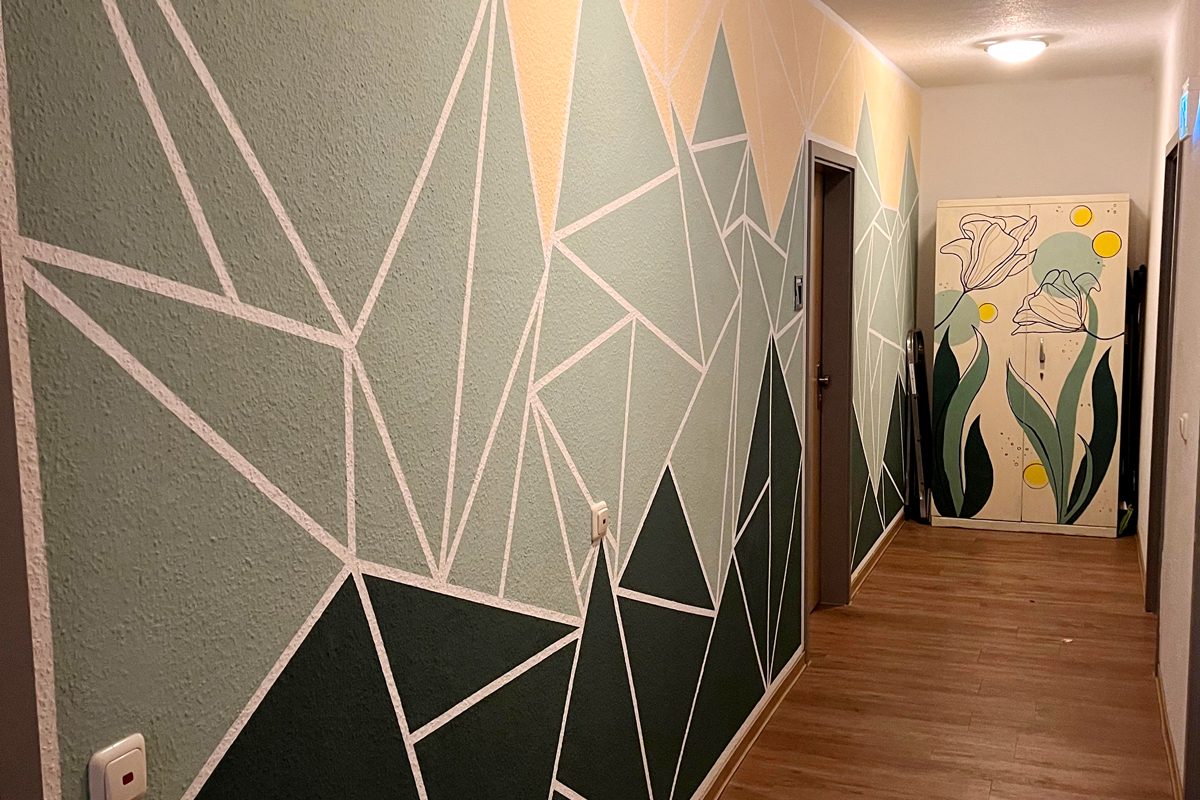 Begonnen in den Sommerferien, konnte das Projekt in den Herbstferien abgeschlossen werden – mit einem Ergebnis, das sich sehen lassen kann: Der Flur der Jugendwohngemeinschaft wirkt nun nicht nur freundlicher und heller, sondern auch größer. Und das Wichtigste: Alle fühlen sich hier deutlich wohler.