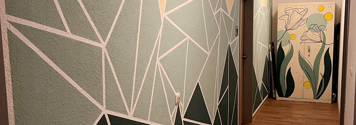 Gemeinsam mit den Jugendlichen beschlossen wir also, den Flur neu zu gestalten. Farbkonzepte wurden gesammelt, Farbkarten im Baumarkt verglichen, die Wände und der Schrank vorbereitet und schließlich gemeinsam farblich gestaltet. Die Wahl fiel auf helle, freundliche Gelb- und Grüntöne, die dem Raum nun Wärme und Offenheit verleihen. Auch der ursprünglich kalt wirkende grüne Schrank bekam ein neues, frisches Aussehen.