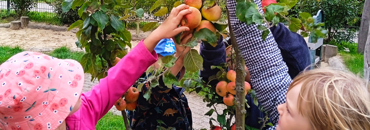 2021 schenkten uns die damaligen Schulanfänger zwei zarte Apfelbäumchen, verbunden mit der Aufgabe, sie zu pflegen und fleißig zu gießen.